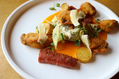 Unwind with friends at CAMP, a modern American eatery in the heart of Downtown Greenville featuring classic dishes with reimagined, globally-influenced flavors.